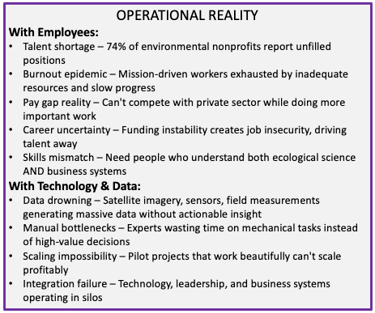Just as the internet transformed how organizations operated in the 1990s, AI is reshaping business today. But restoration and preservation organizations face challenges that AI alone cannot solve. You need leadership intelligence, business frameworks, and AI-powered operations working together or you'll keep hitting the same ceilings while planetary systems collapse around us.